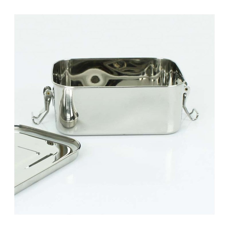 Rétthyrnt nestisbox úr lekaþolnu, riðfríu stáli. Nestisboxinu er lokað og haldið læstu með einskonar krækjum, sjá mynd.