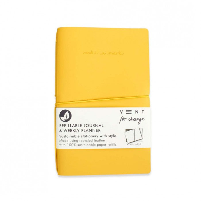 Minnis & skipulagsbók A5 ''Make a mark'' úr endurunnu leðri - Áfyllanleg - Gul