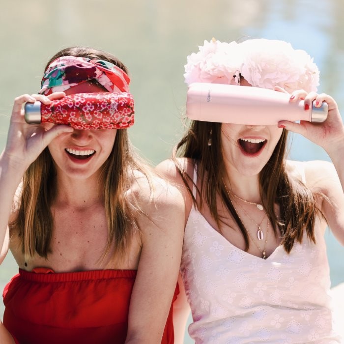 Flaskan er ekki einungis falleg, heldur er hún úr tvöföldu lagi af riðfríu stáli.