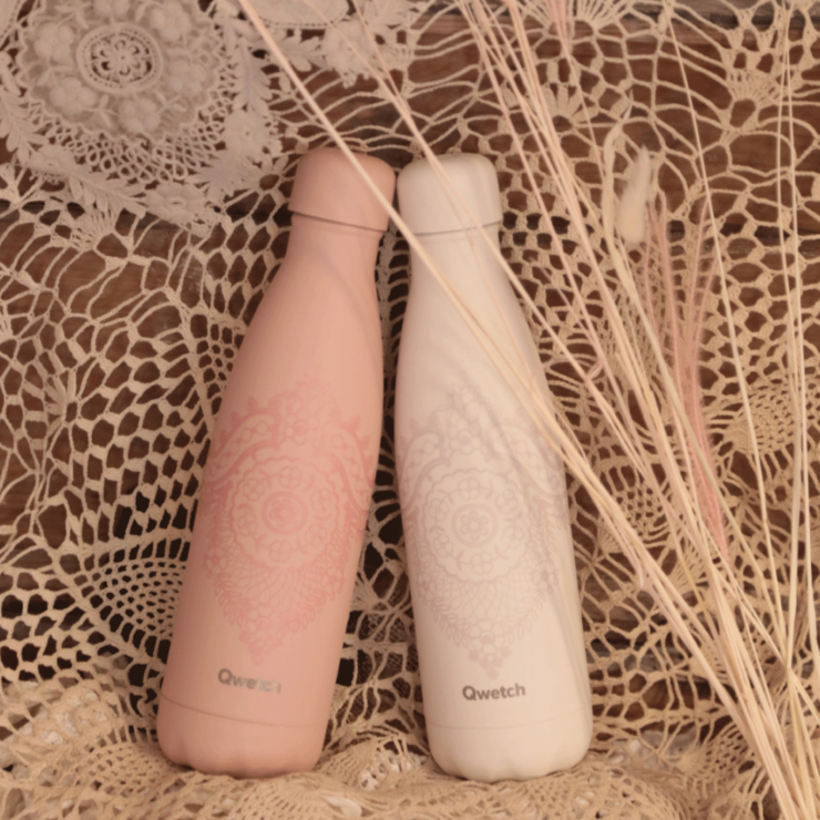 Qwetch Flaska úr einangruðu, riðfríu stáli - bleik blúnda - heitt/kalt 500 ml