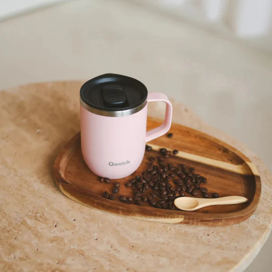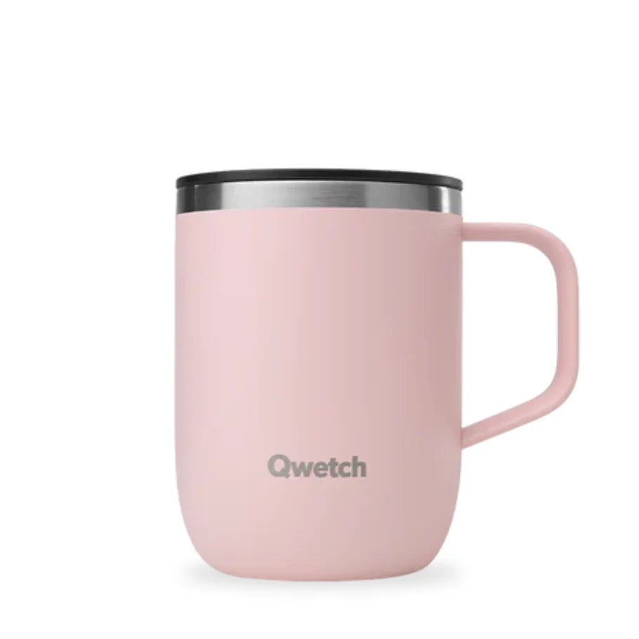 Ferðamál m/haldi. Pastelbleikt, heitt/kalt 350 ml Qwetch