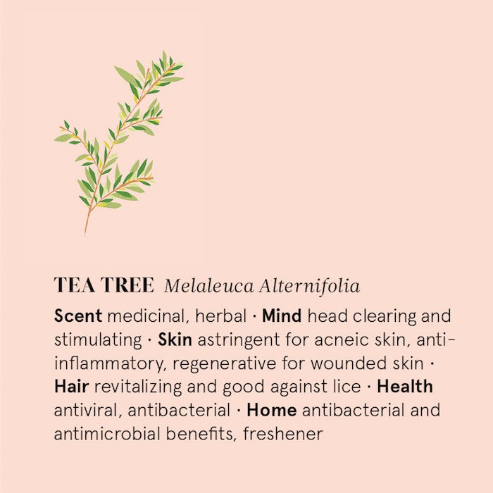 Tea Tree plantan er upprunnin frá Ástralíu og hefur plantan orðið vinsælli fyrir bakteríudrepandi og örverueyðandi kostina sína. Tea Tree olía er mjög vinsæl í allskonar húðvörur og yfirborðshreinsiefni.