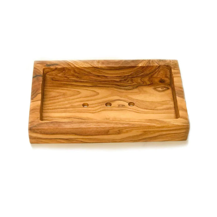 Mjög fallegur sápudiskur úr ólífuvið, handmótaður og eru því engir tveir eins. Hann er 2 cm djúpur, þannig að sápurnar renna ekki úr honum og hefur rými fyrir eina stóra sápu eða 2 litlar.