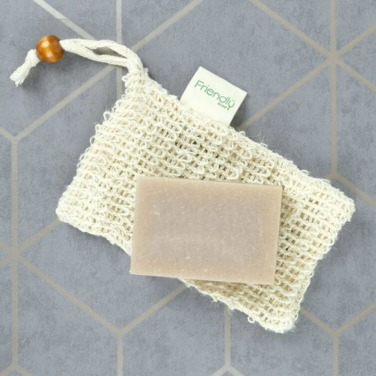 Sápupoki úr sisal hampi, sem gott er að setja alla litlu sápu og hársápuafganga, sem eru alltaf að þvælast fyrir, í til að nýta þá alla og skrúbba húðina varlega með.